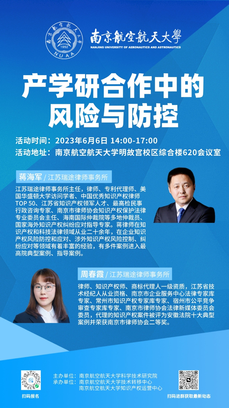 随着产学研合作的不断深入,暴露出越来越多的法律纠纷和潜在的法律风险,因此,我们科研院以《产学研合作中的风险与防控》为主题,请两位在产学研以及知识产权领域的专业律师为我们老师开展专场法务培训,以提高我们科研人员在产学研合作中的风险防控意识以及应对能力。