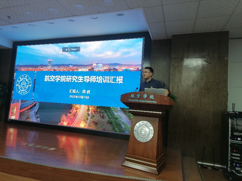 2025年10月13日下午,必威西汉姆官网平台2025年度研究生导师培训会在学院报告厅顺利召开。必威西汉姆官网平台副院长王立峰教授、智能材料与结构研究所袁慎芳教授、结构与强度研究所师岩教授受邀主讲,学院各系所研究生导师、教学办相关工作人员100余人参会,会议由王立峰副院长主持。